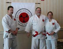 From left to right: Shihan James True, 6th dan; Papa Chris Clarke, 8th dan; and Shihan Jane Butram, 6th dan |