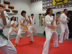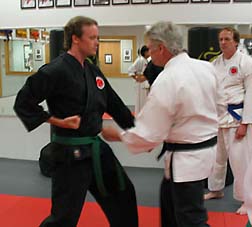 Adult beginners practice palm heel strikes Intermediate students practice drills with Sensei Bob |